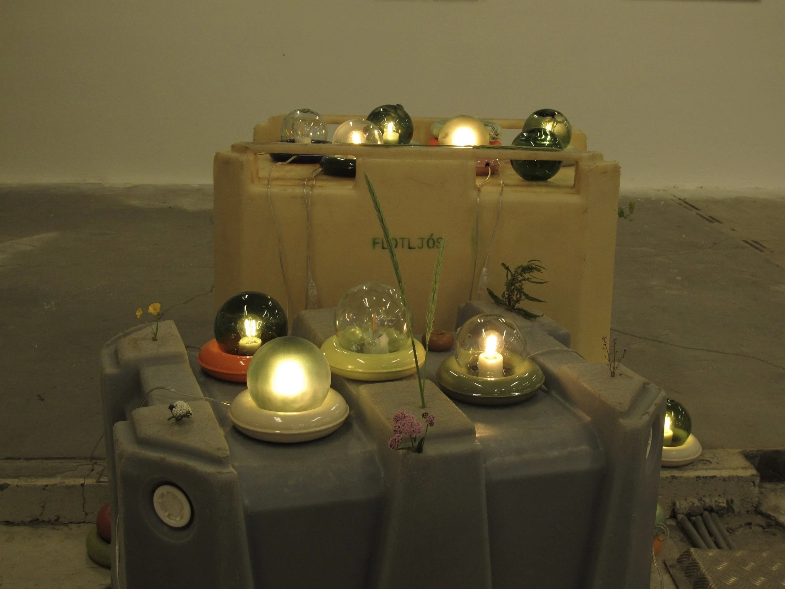 Netakúlan og flothringurinn gegndu eitt sinn sama hlutverkinu, að sjá til þess að halda netum á floti. Nú fá þessir hlutir nýtt hlutverk í formi lampa þar sem hringurinn heldur kúlunni á floti.