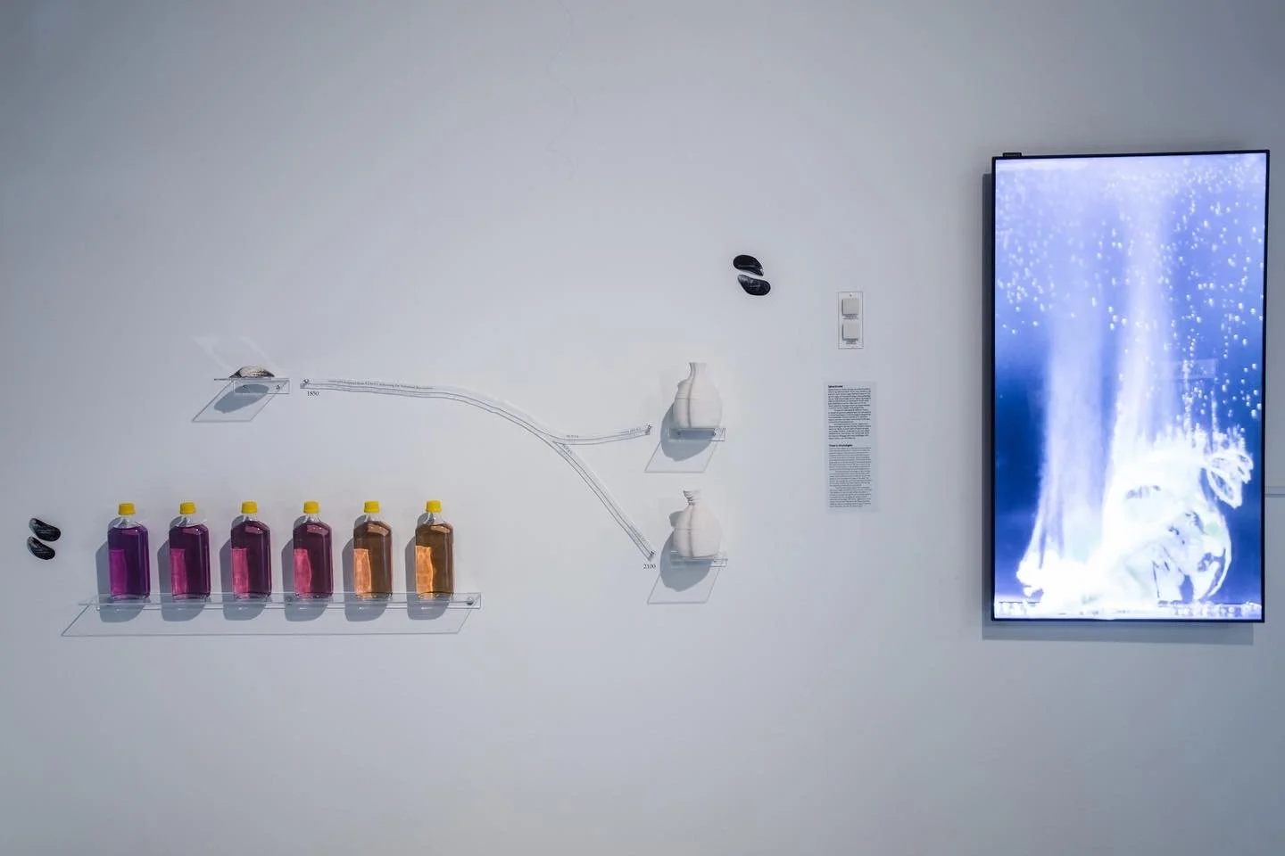will be the first ones to be seriously affected by environmental changes and they are at the same time the basis of the marine food chain. Through symbolic artefacts, which were created in conversation with experts in marine science, the viewer gets an insight into the changing world of shellfish. The aim is to show the intertwining of the environment and the ongoing disturbance of the marine ecosystem.